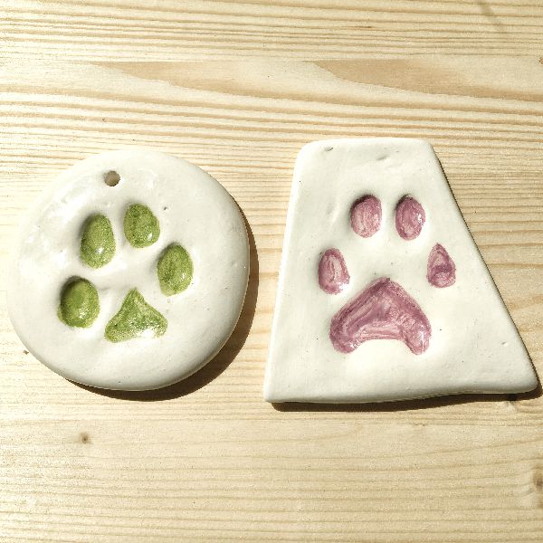 V svežo glineno ploščo bodo vaši ljubljenčki odtisnili svojo šapo. Takoj za tem boste lahko ploščico poljubno obrezali in po želji pobarvali. Izdelek bomo ustrezno dokončali.