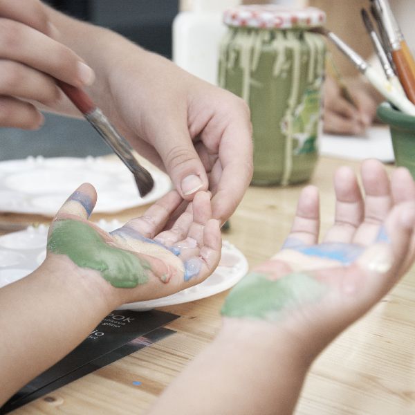 Dlani bomo premazali z barvo in nato prislonili na vaš izbrani polprodukt. Izdelek bomo nato poglazirali in izvedli glazurno žganje, da bo odtis dlani ali stopala za zmeraj vžgan v izdelek.
